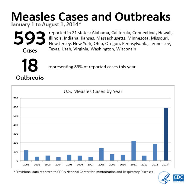 - Measles: The CDC reports that measles cases in the United States have skyrocketed in 2014: