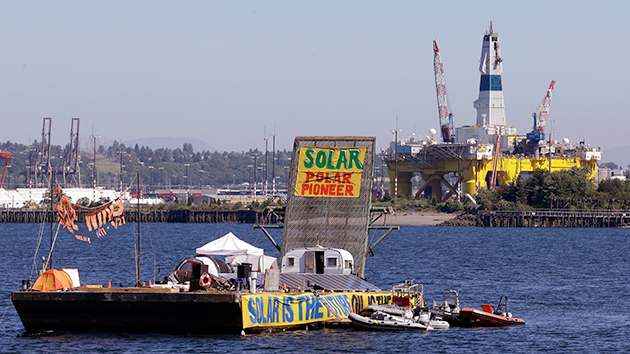 Protesters demonstrate near Shell's Arctic drilling rig, the Polar Pioneer, while it was docked in Seattle this summer.Elaine Thompson/AP