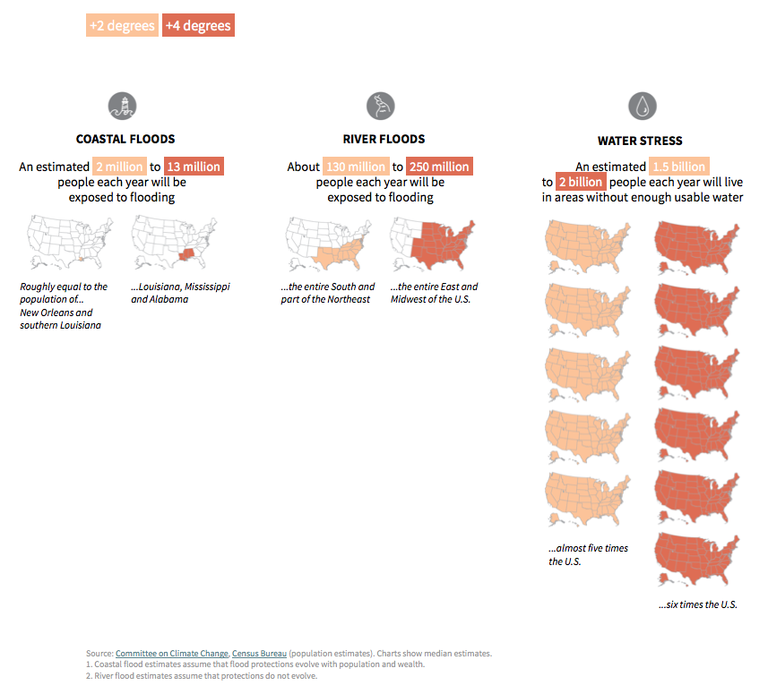 Even if nations meeting in Paris curtail carbon emissions, a growing number of communities will be exposed to threats caused by climate change. Vulnerable populations that live near water or in arid places will face massive disruptions to their way of life: Flooding and severe drought are on course to become much more common.