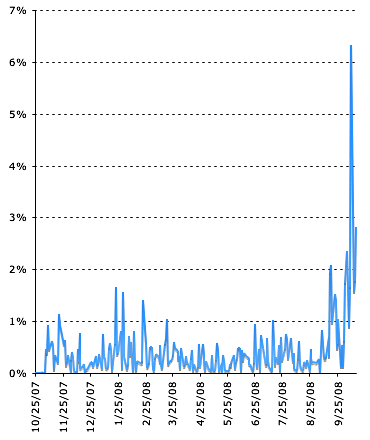Now comes a nice chart via Zubin Jelveh that demonstrates the point graphically. As you can see, normally the stock market moves anywhere from a quarter of a percent to one percent in the final hour of the day. That’s roughly the same as the other six hours the market is open. But since mid-September? Final-hour volatility jumped to 2%, and then earlier this month to a high of 6%. That’s as much movement as the entire rest of the day. So if you’re the nervous sort, give yourself a break and take your eyes off the hourly movements of the Dow. Just check in at 4 pm and be done with it.
