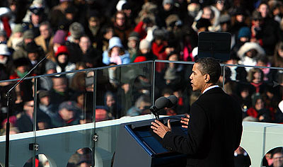 INAUGURATION 7….I’m pretty much aligned with conventional wisdom on Obama’s inauguration speech: It was OK, but not great. The somberness wasn’t the problem. For the most part, that was appropriate. But with a few exceptions, it struck me as a little bit too utilitarian and themeless, sort of a stripped down State of the Union, or even a campaign stump speech. There was nothing badly wrong with it, but neither was it very memorable.