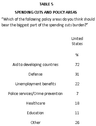 OK then. Spending cuts it is! And just what should we slash? Well, that’s shown in Table 5, to the right, and the answer is…..