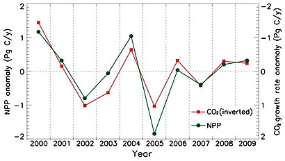 But now comes another climate-related piece of research, this time in the equally respected Science, and this time Stuart’s skepticism is on much firmer ground. For the last decade scientists have been collecting information on terrestrial vegetation coverage using the Moderate Resolution Imaging Spectroradiometer (MODIS) on board NASA’s Terra satellite. Their conclusion: vegetation coverage is down, which means plants are pulling less carbon out of the air, which means we have yet another positive feedback loop causing an increase in atmospheric carbon levels.