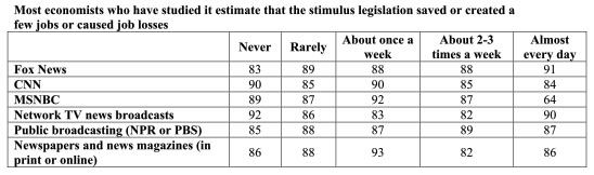Overall, heavy Fox viewers were the most uninformed about this. But only slightly. With the exception of the MSNBC audience, every other audience was almost equally uninformed. The only exception was daily viewers of Keith and Rachel, and even there an astonishing 64% of viewers basically thought the stimulus was worthless.