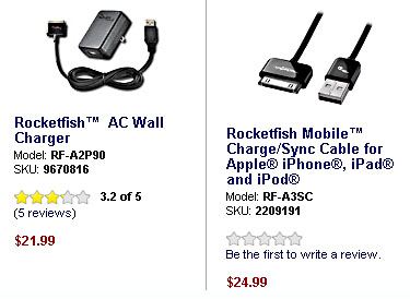 Apple Computer seems to think that $50 is a fair price for a spare iPhone charger, so I headed off to Best Buy today to see if I could find something more reasonably priced. And I did. But can anyone explain this?