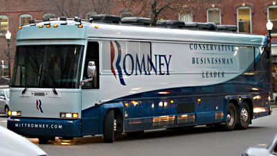 Romney’s campaign bus circled Obama’s fundraiser at Boston Symphony Hall Monday night several times, according to Romney deputy press secretary Ryan Williams and verified by several onlookers who said it was honking its horn as it passed. Williams told BuzzFeed that the bus made “a few” laps before local police closed the roads around the venue before Obama’s arrival. They plan on bringing the bus back after Obama leaves to attend another fundraiser.