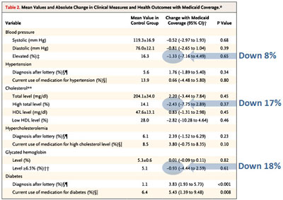 So that’s that. You can’t honestly say that the study shows that Medicaid “seemed to have little or no impact on common medical conditions like hypertension and diabetes.” That just isn’t what it showed.