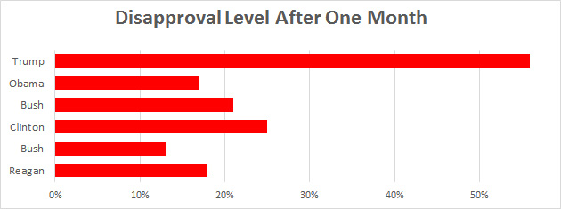 Well, at least Trump is #1 at something. In related news, I was looking at Pollster yesterday and found something odd. I’ve mentioned before that although Trump’s disapproval rating has gone up since Inauguration Day, so has his approval rating. But it turns out that if you look only at live phone polls—generally considered the highest quality polls—his approval rating has actually plummeted by six points: