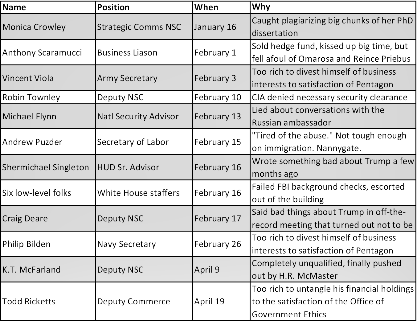 Todd Ricketts, President Trump’s choice for deputy Commerce Secretary, has withdrawn. Can you guess why? Yep: because he’s so rich that he can’t “untangle” himself from his financial holdings to the satisfaction of the Office of Government Ethics. Trump himself may not be subject to normal ethics rules, but everyone else is. And let’s face it: no one with substantial wealth really wants to go through all this divestment and blind trust folderol just for a deputy position. Especially in the Commerce Department, which ranks pretty low on everyone’s list of cabinet agencies.