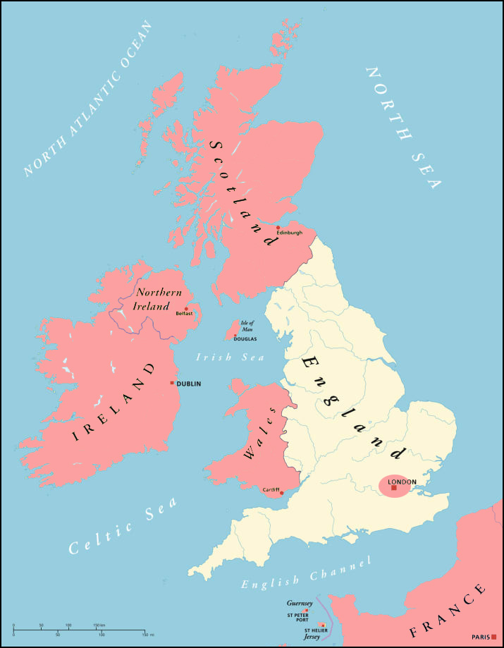 Ireland is not willing to accept a border with Northern Ireland. Answer: leave Northern Ireland in the EU (sort of). But Northern Ireland won’t accept any kind of border with the rest of Britain. And anyway, if Northern Ireland gets to stay in the EU, then Wales, Scotland, and London all want to stay in the EU too. So we’d end up with a map like this:
