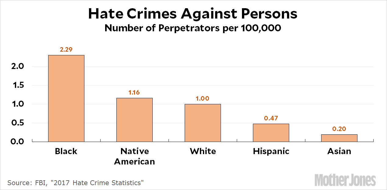 And here are the numbers for the share of different demographic groups who commit hate crimes: