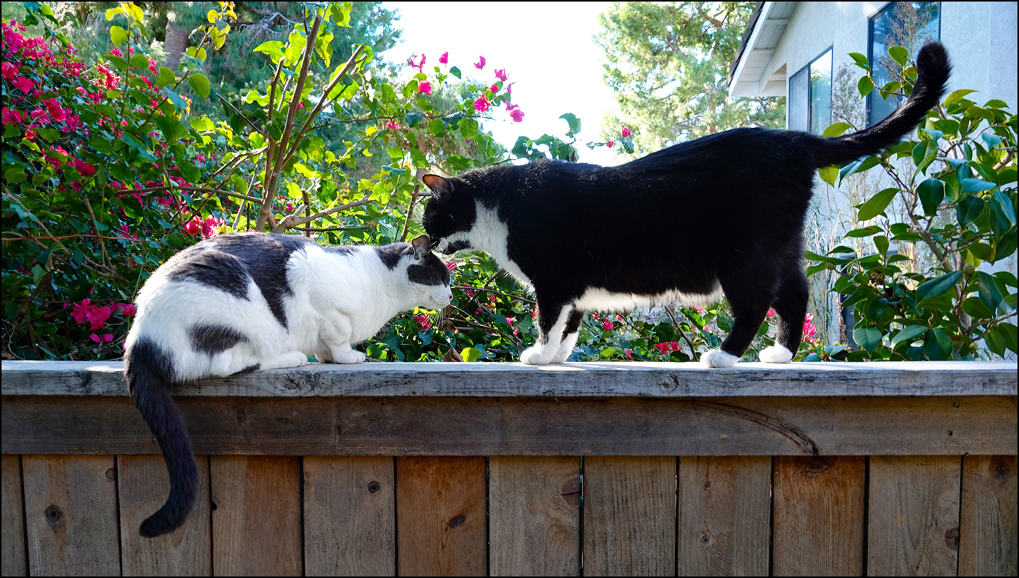 Isn’t this adorable? Needless to say, the licking only lasted a few moments, at which point Hopper sensed a change in mood and gave Hilbert a little swat. Then they passed each other on the fence and went their separate ways.
