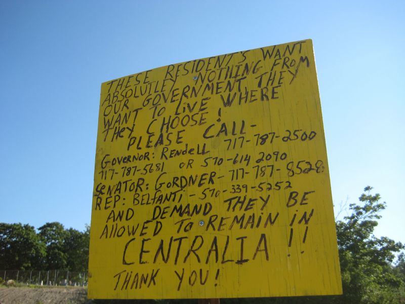 Centralia, Pennsylvania—As I’ve mentioned earlier, one of my interests in this trip is reexamining the map—looking at alternative versions of what the atlas of the United States might look like in the past and present. Perhaps nowhere in America is that vision more clearly defined than in Centralia, where, since 1962, an underground coal fire has smudged, if not entirely erased, an entire village from the map.