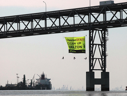 Anti-Chevron activism has been at a fever pitch this week in advance of the oil giant’s annual shareholder meeting on Wednesday morning. Yesterday saw the release of Global Exchange’s third annual alternative “The True Cost of Chevron” report, which highlights the company’s bad behavior in the past year. Other environmental groups are taking their usual public condemnation of the divisive company to new heights (check out that photo of the Richmond Bridge in Northern California), and working to hit Chevron where it hurts—in the moneymaker. And Chevron’s shareholders appear to be listening.
