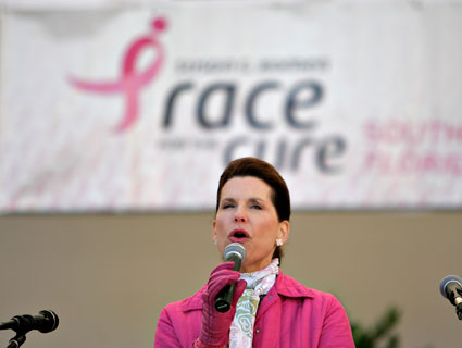 But wait, there are a few Democrats, including former Nine West executive Brenda Lauderback, who made some modest donations to Obama but is also notable for the number of boards she serves on (Bloomberg Businessweek links her to 51 board members in five different organizations across six different industries). Fellow Obama donor, oncologist Dr. LaSalle D. Leffall Jr., is co-chair of the board, and the only medical professional on it. A bigger Dem donor is lobbyist John D. Raffaelli, whose firm Capital Counsel LLC helps both GOP and Dem causes; he was also the counsel for tax and international trade to former Sen. Lloyd Bentsen (D-Tex.). Finally there’s the only board member without any track record of political donation: breast cancer survivor, longtime Komen foot soldier, and VP at a hospital consulting service, Elyse Gellerman, whose job is to represent the Komen affiliates.