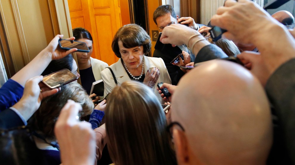 Sen. Dianne Feinstein (D-Calif.) speaks with reporters about the James Comey firing on Wednesday.Jacquelyn Martin/AP