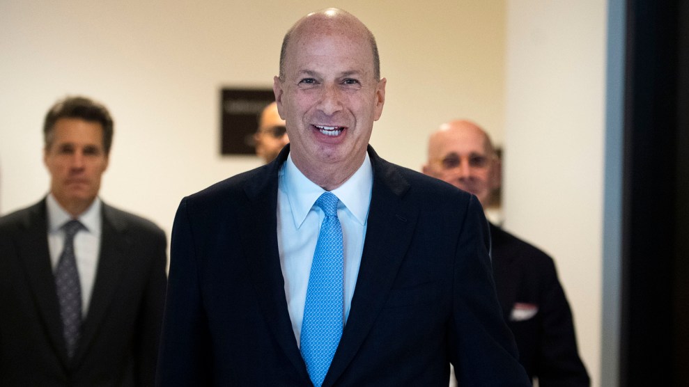 In recent weeks, Sondland has emerged as the poster child of the diplomatic spoils system because of his role in the impeachment inquiry. As ambassador to the EU—an entity that does not include Ukraine—he somehow became a key participant in what Bill Taylor, the top US envoy in Kyiv, called a “highly irregular” channel of outreach to the Ukrainian government. The goal of this shadow diplomacy, led by Giuliani, was to get Ukraine’s leader to issue a statement saying it was investigating Trump’s political enemies, including Joe Biden and his son, Hunter. In a September meeting with an adviser to the Ukrainian president, Sondland made clear that US military aid would be contingent on those probes. “I said that resumption of the US aid would likely not occur until Ukraine provided the public anticorruption statement that we had been discussing for many weeks,” Sondland recently told lawmakers—a fact that he had omitted from the original version of his testimony.